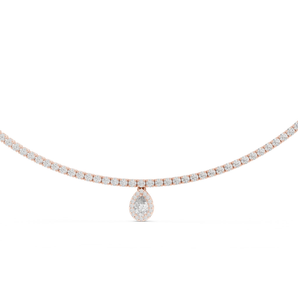 Aria Pear Halo Tennis Lab Diamond Necklace