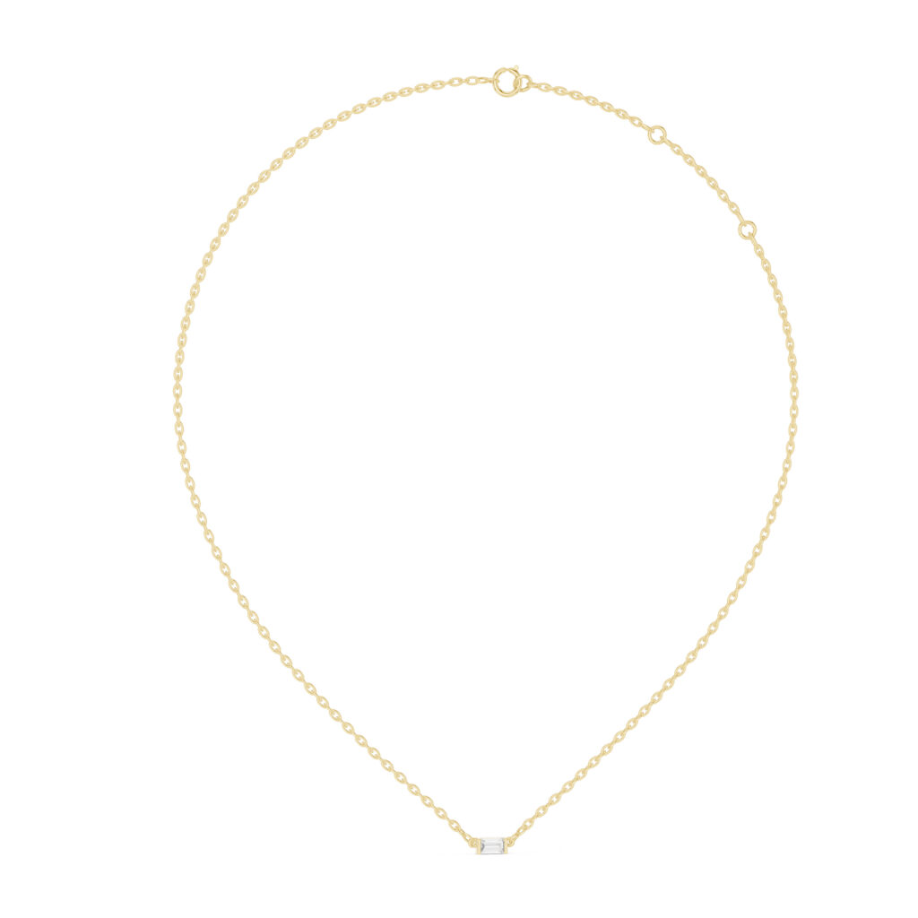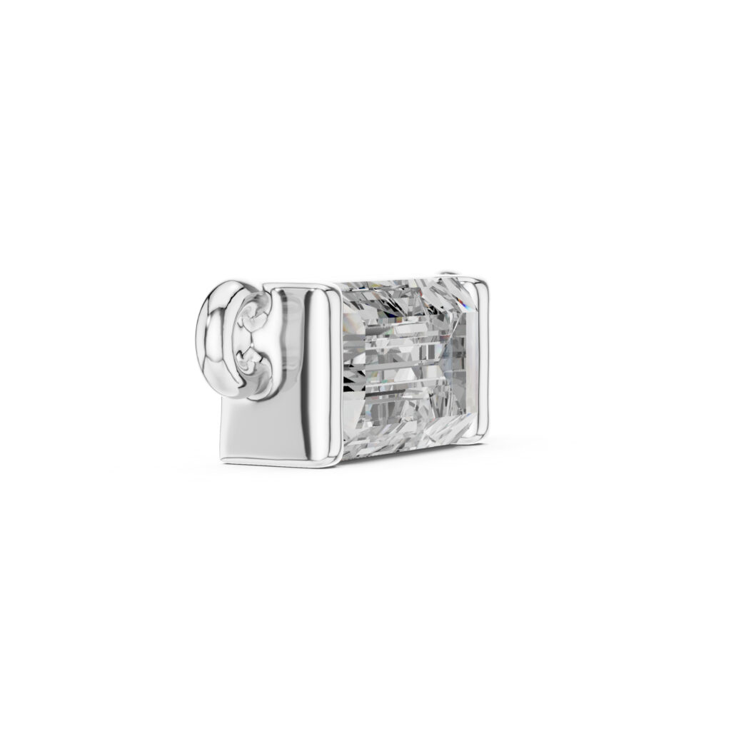 Redefine your style with this striking emerald-cut lab diamond pendant, uniquely set in a contemporary East-West orientation. The clean, step-cut facets of the diamond are beautifully framed by a polished, offering a sleek and architectural look. This ethically sourced, SEO-optimized piece combines vintage elegance with a modern twist, making it a perfect sustainable luxury statement.